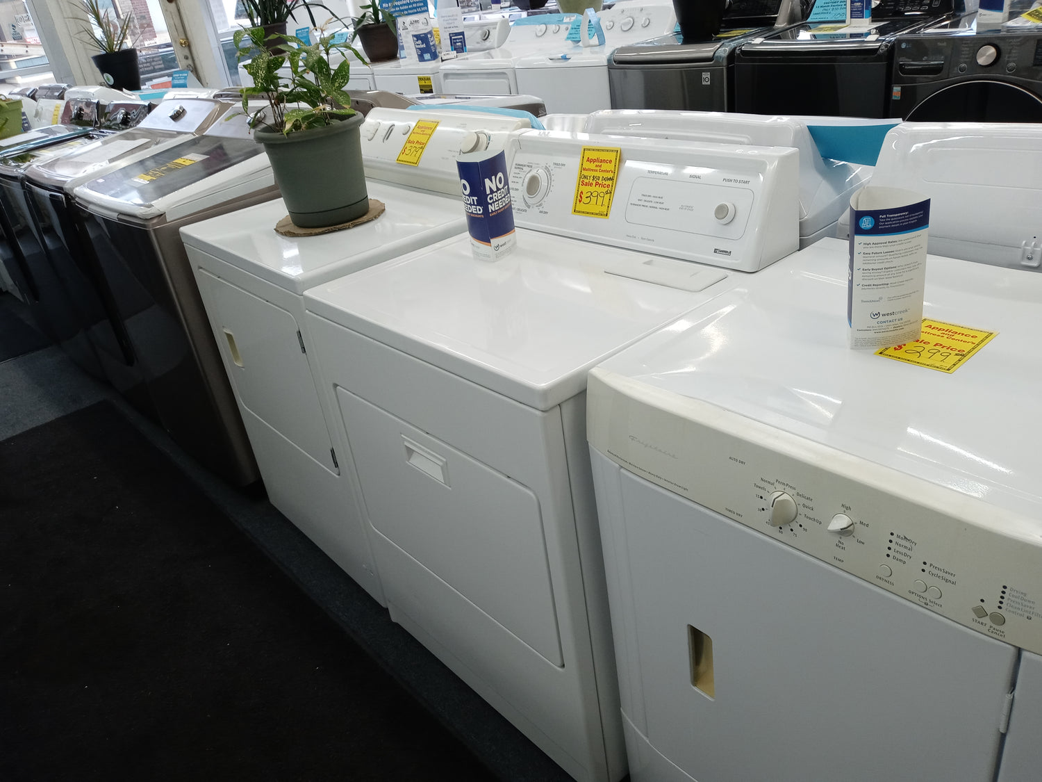 We have used dryers as low as $300. Used washers start at $350. They have lots of spacious room to help make laundry easy on you.